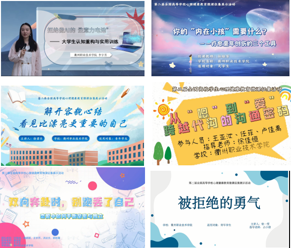 近日,衢州职业技术学院师生心理微课大赛圆满落幕。本次大赛由学工部组织,旨在丰富心理健康教育形式,增强师生心理健康意识,培养积极心态,并选拔优秀作品参加“第二届全国高等学校心理健康教育微课征集展示活动”。大赛吸引了全校师生的广泛关注和积极参与,共收到众多高质量作品,涵盖心理健康基础知识、情绪调适、人际交往等多个方面。参赛者们通过拍摄、录屏、动画等形式,精心制作了5~8分钟的微课视频,并提交了配套教案和作品信息表。