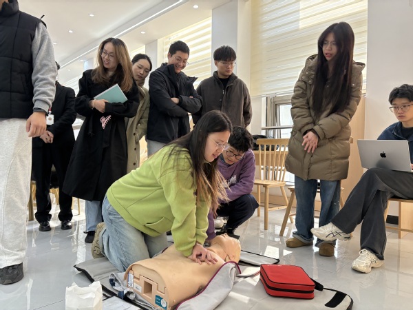 竞赛结束后,学工部特邀医学院李良秀老师为全体公寓管理人员及公寓辅导员开展了心肺复苏(CPR)专项培训。李老师采用理论讲解与实操演示相结合的方式,系统传授了急救流程、操作要领和注意事项。参训人员认真听讲、积极互动,并在指导下进行了模拟练习,初步掌握了关键急救技能,为应对公寓内可能发生的健康突发事件增添了重要保障。